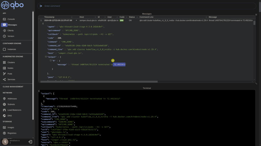 It took approximately 80 seconds to create a 3-node cluster from scratch. As a final step, let’s verify the nodes using the QBO CLI. (Show thread termination time)